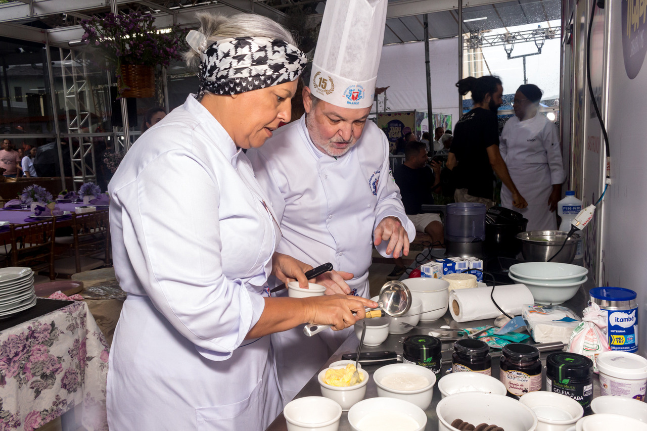 Os apaixonados por gastronomia continuam se encantando com as experiências do espaço Cozinha Show. No segundo dia do Festival da Jabuticaba, os talentosos chefs Marlon Sérgio e Lu Barreto conquistaram o público com sua obra de arte e o sabor o irresistível da Cheesecake de Jabuticaba.
