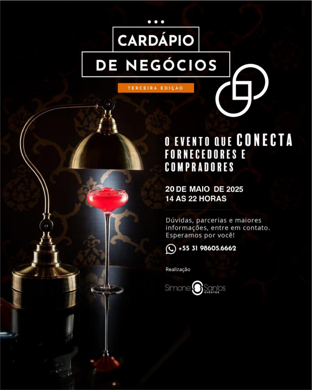 Não perca a oportunidade de participar de um evento que está transformando a forma como o setor de A&B se conecta e faz negócios em Belo Horizonte. O Cardápio de Negócios é mais que um evento é o futuro da gastronomia e hospitalidade em um só lugar.