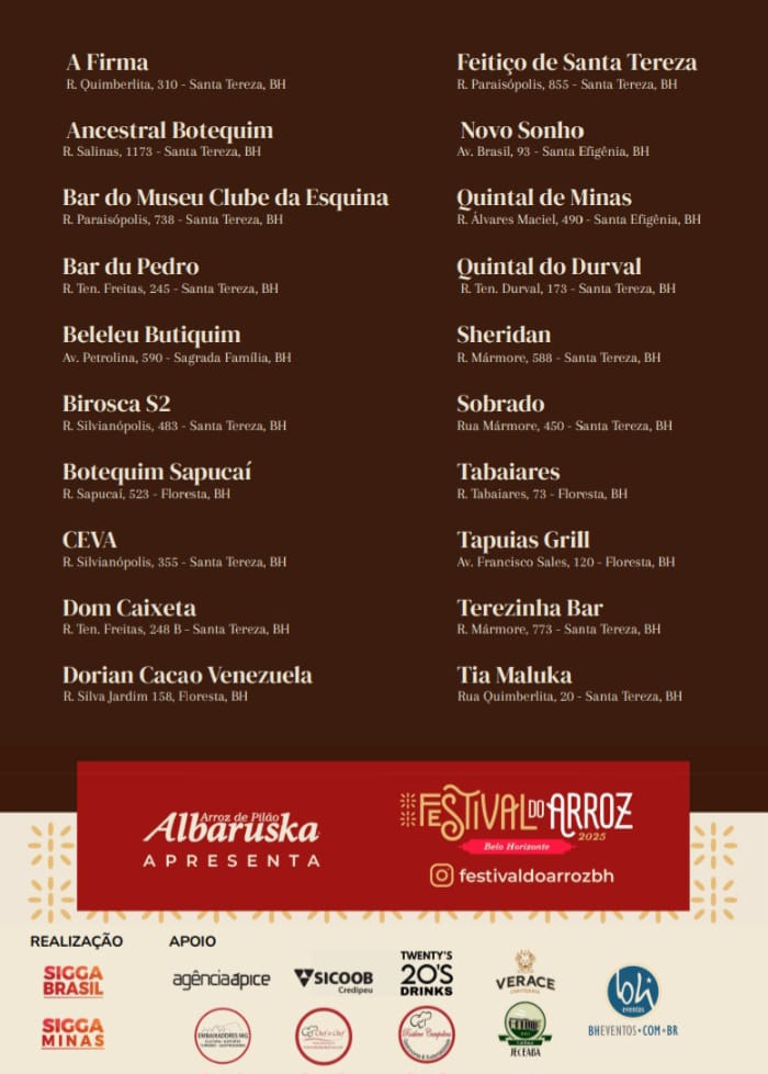 Pela primeira vez em Belo Horizonte, o arroz — ingrediente essencial na culinária brasileira — é o grande protagonista de um festival inteiramente dedicado a ele. De 9 a 24 de maio, o Festival Gastronômico do Arroz reúne 20 bares e restaurantes da região Leste da capital mineira em um circuito recheado de criatividade, tradição e muito sabor.